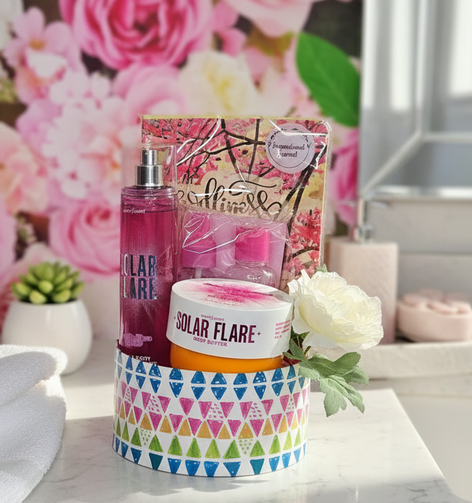 5pc Set Includes: Body spray, body cream, 2pc bottle dispensers,Inspirational book.