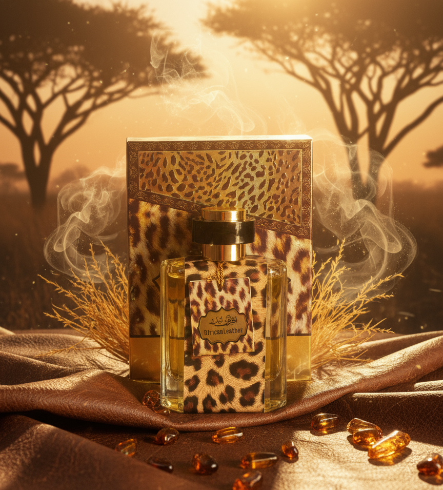 Untamed. Magnetic. Wildly refined. African Leather is a tribute to the raw beauty of the savannah and the spirit of adventure. It opens with a fiery blend of cardamom and saffron, igniting the senses with spice and heat. A heart of geranium and rose adds a floral pulse, while cumin and patchouli deepen the rhythm. The base settles into a rich, animalic trail of leather, oud, and vetiver, evoking sun-warmed earth and windswept plains.
